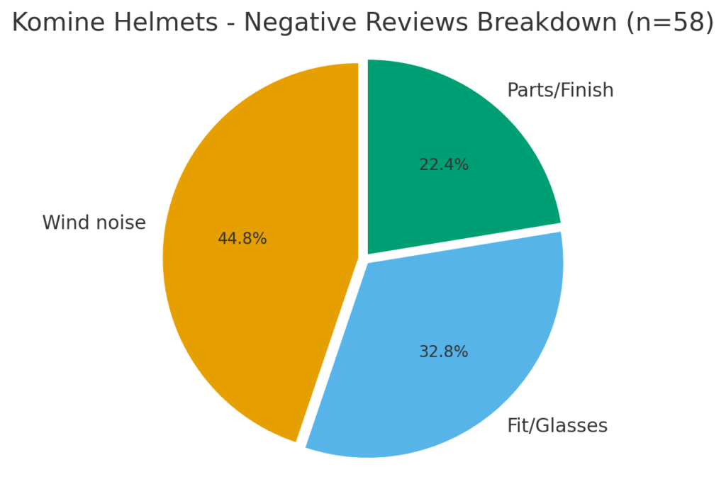 悪い声は「高速域のノイズ」「フィット・メガネ周り」「パーツや仕上げ」の3点に集中しています。