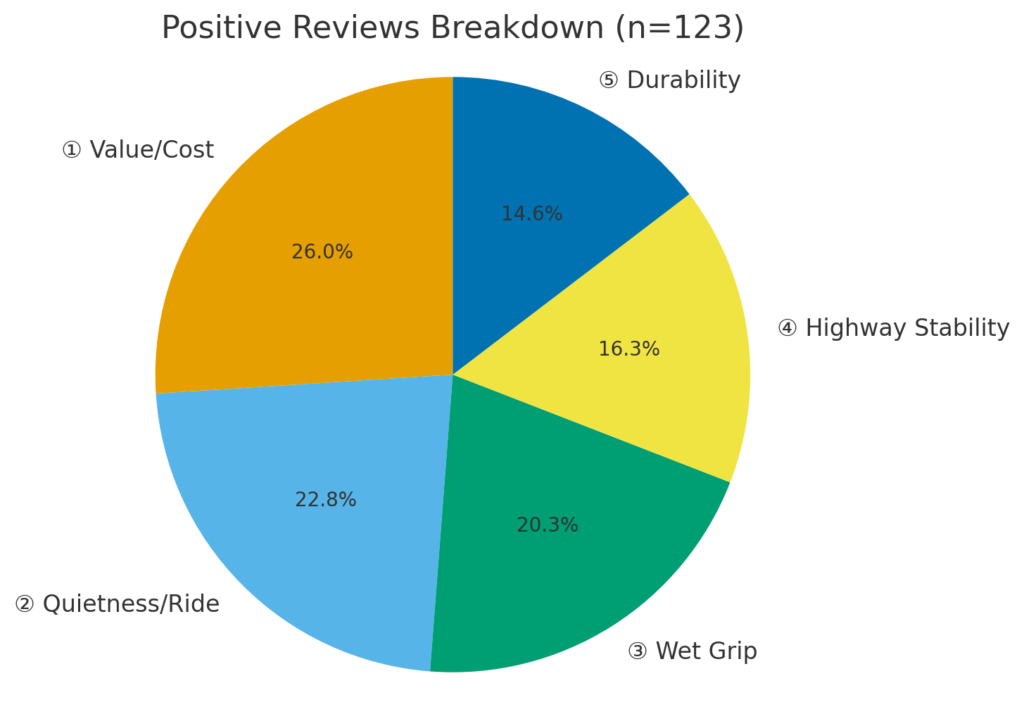 こう考えると、8割超がポジティブという強い傾向です。悪い評判は「高速域のコーナリング剛性」や「雨の日の限界把握」など、使い方や比較対象で感じ方が変わる内容が中心でした。