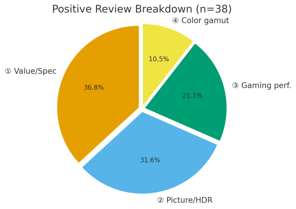 äŸ¡æ Œå¯Ÿæ§èœãMini LED/HDRäœéšãè²åã®åºããå¿çé床ãã²ãŒã æ©å¯Ÿå¿ãè©äŸ¡ãã声ãç®ç«ã¡ãŸããã代衚äŸãšããŠãWQHD 320HzÃMini LEDã®P275MS+ãé«ãè©äŸ¡ããå°éã¬ãã¥ãŒãSNSæçš¿ãè€æ°èŠãããŸãã - æªãè©å€ïŒ14ä»¶ïŒ23.3%ïŒ